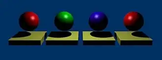 - the objects are in a many-one relationship to the color variable: several objects have the same color