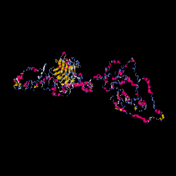 The mRNA for this protein consists of 9058 base pairs in a linear sequence with the coding sequence begins at base pair number 334 and extends until base pair number 8418.[5] The translated protein is a total 56 exons that constitute a final length of 2694 amino acids.[6] There are currently 9 known isoforms within humans.[3]