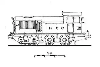 ![]() Elevation of NCC Class X diesel-hydraulic locomotive No.17 | |||||||||||||||||||||||||||||||||