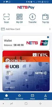 | • NETSPay | Stores digitised NETS EFTPOS Debit cards. Includes a prepaid wallet for peer-to-peer money transfers and UnionPay support. |