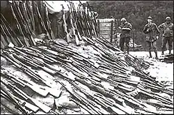 Communications relied heavily on field telephone and runner until the latter stages of the war when mostly conventional forces took the field. A simple signaling system via a series of gunshots was also used to communicate while moving in the forests, with the pattern and sequence of the shots conveying meaning to other PAVN troops.[14] When VC or PAVN did acquire modern equipment via capture or supply, they made numerous attempts at communications deception, imitating US radio transmissions and call signs to lure US/ARVN helicopters and troops into ambushes, or redirecting artillery fire from themselves on to US/ARVN positions via bogus requests for artillery adjustment and support.[15]