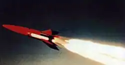 The NOTS-EV-1 Pilot, better known as NOTSNIK (pronounced notsnik a play on "sputnik") was an expendable launch system and anti-satellite weapon developed by the United States Navy's United States Naval Ordnance Test Station (NOTS).[2] NOTSNIK began as an in-house project using available NOTS funds. The Advanced Research Projects Agency later supplied some funds for the program.[3] The program involved creating transistorized sensors to detect nuclear explosions from the Operation Argus tests. Ten were launched during July and August 1958, all of which failed. It was the first air-launched rocket to be used for an orbital launch attempt; however, none was recorded as having reached orbit. Following the third orbital launch attempt a NOTS engineer at the tracking station in Christchurch, New Zealand reported receiving a weak signal from the spacecraft;[4] This was never confirmed,[5] and the launches were not catalogued as having reached orbit.[6] The Pilot rocket was part of Project Pilot.[7]