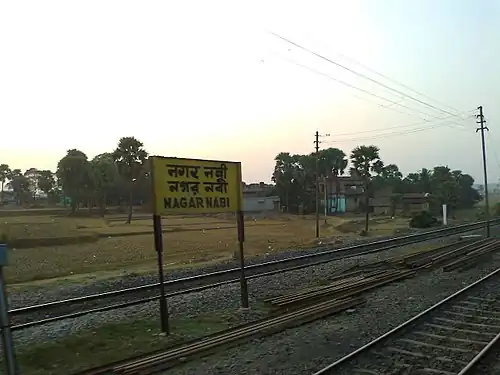 Nagarnabi railway station (code:NGF) is a small station located on the Jharkhand–West Bengal border. It is the last railway station of Jharkhand falling on the Sahibganj loop line under Eastern Railway zone.
