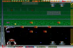 The players starts with only one weapon at the beginning of the game; a Vulcan shot but the ship can expand its inventory by collecting new weapons scattered on the stage such as a Wide shot and a Laser, while other power-ups appear at certain points during the stages that changes or enhances the arsenal. Players can also equip the ship with a set of two satellite "options", whose positions can be arranged and attack at the player's will. At the end of each stage, a boss must be fought to progress further through the game, with each stage increasing in difficulty. If the ship is hit by enemy fire, the players lose a live as well as both the options and the weapon in use, instead of losing all collected weapons and once all lives are lost, the game is over.