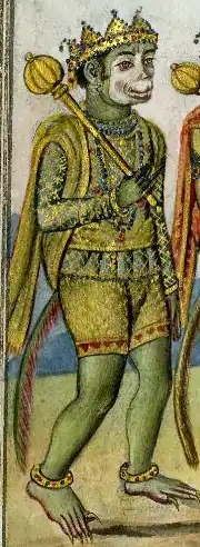 Nala fights in the battle led by Rama against Ravana and his rakshasa army. Nala is described to be seriously wounded by the arrows shot by Ravana's son Indrajit.[13] Nala kills a rakshasa called Tapana in battle.[14] The Mahabharata describes him fighting a giant called Tundaka.[2]