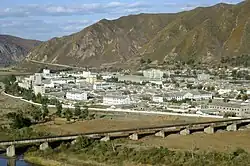 ![]() View on the Namyang Workers' District from the Chinese side of the river (2018) | |