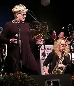 Kelly was born October 12, 1950[1] in Rochester, New York and began studying music at the age of four. She studied voice at the Eastman School of Music and studied piano, clarinet, drama and dance with private instructors. She gravitated to jazz because of the freedom to improvise and then formed her own group. Over the course of an illustrious, five-decade career, Kelly has honed her trademark swing/bop, take-no-prisoners, soulful, swinging style in front of audiences across the U.S. and abroad, including concerts in Singapore, Switzerland, France, Turkey, Japan, Hong Kong, Bangkok, and Jakarta. Kelly got her real education as house singer at Jewels, a jazz club in center city Philadelphia, where she shared the bill with, among others, Betty Carter, Houston Person, Etta Jones, Joey DeFrancesco, Groove Holmes and Jack McDuff. Nancy is a charter member of the Upstate Burn Society, a loosely organized group including Don Menza, Joe Romano, and several other Jazz Illuminati from Upstate New York. Kelly was inducted into the Rochester Music Hall of Fame on May 1, 2022 (Class of 2020). Past Alumni include trumpeters Chuck Mangione and Lew Soloff; opera star Renee Fleming, bass legend Ron Carter, drummer Steve Gadd and vibraphonist Joe Locke. Kelly appears regularly in New York City, at such hallowed venues as The Blue Note, Birdland, The Rainbow Room, and Dizzy’s at JALC. She also works frequently in Los Angeles and Miami, and at countless jazz clubs, festivals, and as part of symphony orchestra engagements across the country. She was twice named “Best Female Jazz Vocalist” in the Down Beat Readers’ Poll. She has recorded six critically-acclaimed recordings. Her first recording, Live Jazz, reached #11 on the Billboard jazz charts. Born to Swing and her fourth recording, Well Alright, feature guest tenor saxophonist Houston Person. Nancy’s highly acclaimed B That Way enjoyed eight solid weeks in the top 50 on the national Jazz Week charts and received rave reviews worldwide. Her most recent full album, Remembering Mark Murphy, was hailed as one of the top 20 Jazz recordings of 2019.