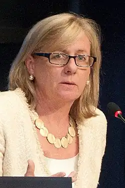 Nancy Elisabeth Soderberg (born March 13, 1958) is an American diplomat, former political candidate, and foreign policy strategist who currently serves as Resident Director for National Democratic Institute in Kosovo.[1] Soderberg served as the third-ranking official on the Clinton administration's National Security Council from 1993 to 1997 and as an Alternate Representative to the United Nations as a Presidential Appointee, with the rank of Ambassador, from 1997 to 2001. She has also held positions at the International Crisis Group, Connect U.S. Fund, and the Public Interest Declassification Board. In 2012 she ran unsuccessfully for Florida's 4th Senate district. Soderberg ran for Congress as a Democrat in the 2018 midterm elections in Florida's 6th congressional district.[2][3]