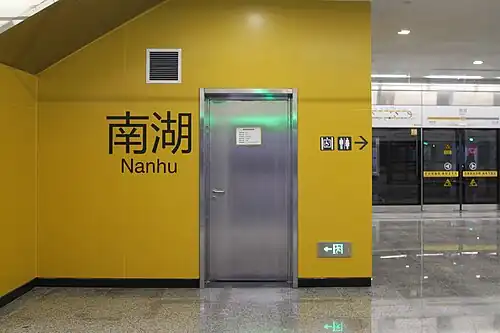 Nanhu station (Chinese: 南湖站; pinyin: Nánhú Zhàn; lit. 'South Lake station') is a station on Loop line of Chongqing Rail Transit in Chongqing municipality, China.[2] It is located in Nan'an District and opened in 2018.[1] Line 10 reached this station on 30 November 2023.