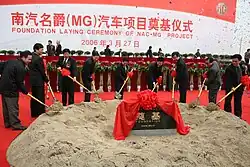 A result of Chinese State policy to encourage mergers and acquisitions in the domestic automobile market, SAIC Motor and the state-owned parent company of Nanjing Auto, Yuejin Automotive Group, finalized a long-planned merger in December 2007.[34] Fitful merger negotiations between the two companies had begun in 2001, and the tie-up was widely anticipated.[27] Prior to the merger, but bidding alongside SAIC,[1] Nanjing Auto purchased the remaining assets of British group MG Rover for near US$100 million.[35]