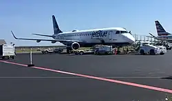 The airport apron for commercial aircraft has eight parking stands for Cessna 402 aircraft mainly operated by Cape Air and Nantucket Airlines. There are also four larger parking stands for JetBlue Embraer 190 jets, American Eagle Airlines CRJ-200/CRJ-700/CRJ-900 and Embraer 175 regional jets, Delta Connection CRJ-200/CRJ-700 regional jets and United Express ERJ-145 regional jets. More stands are available if needed. Most of the parking is reserved for general aviation aircraft, with parking for the larger, commercial services located on the north side of the terminal.