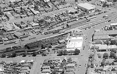 The original Napier station building was on the corner of Station Street and Millar Street, close to the centre of Napier. The facilities on the site increased to include the passenger station plus a goods yard, locomotive depot, workshop, and a way and works (maintenance) depot. The line was on a curve and difficult to work, and the site was limited by level crossings at each end and with no room for expansion.