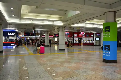 Narita Airport Terminal 2·3 (Airport Terminal 2) Station (空港第2ビル駅, Kūkō-daini-biru eki) is an underground railway station located beneath Terminal 2 of Narita International Airport in Narita, Chiba, Japan. The station is linked to Higashi-Narita Station by a 500 m (1,600 ft) underground passage. The station serves both Terminal 2 and the nearby Terminal 3.[1]