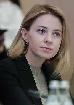 Natalia Vladimirovna Poklonskaya[a][b] (born 18 March 1980) is a Ukrainian-born Russian lawyer. She has served as the adviser to the Prosecutor General of Russia since 14 June 2022.[4]
