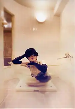 Tokyo Hotel Story continues Daoust's exploration of female sexuality and the subversion of gender stereotypes. Over a four-month period Daoust engaged with the dominatrices at one of Tokyo’s premier S&M love hotels, the Alpha-In.[6] She photographed 39 women in their private rooms, surrounded by their equipment and dressed in the regalia that define their trade. This work takes the viewer beyond taboos, unveiling a universal human desire to escape reality, creating alternate worlds that oscillate between fantasy, truth and perversion.
