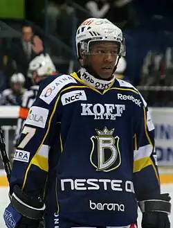 ![]() Robinson with the Espoo Blues during the 2010-11 season. | |||