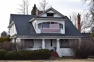 The Nathan Smith House in Boise, Idaho, is a 1+1⁄2-story Colonial Revival farmhouse designed by John E. Tourtellotte and constructed in 1900. The house features a veneer of cobblestones from the Boise River below shingled upper gables and hooded dimple windows, but its most prominent design element is a front facing basket arch balcony above the porch. The overall design is an early example of a Bungalow, and it influenced later designs in Boise. The house was added to the National Register of Historic Places in 1983.[2]