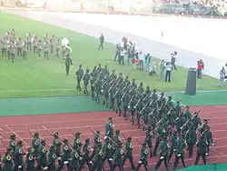 The unit was originally founded on 01 May 1967 as the State Presidents Guard[1] when Charles Robberts Swart was the State President of South Africa. It was dissolved in 1990 ahead of the first democratic elections in 1994. The unit was rebranded in September 1996 as the National Ceremonial Guard. The NCG's old uniform of dark green tunic with black pants was reinstated after it was reestablished. In April 2008, the NCG moved into the Sebokeng Military Complex by order of the president.[2][3]