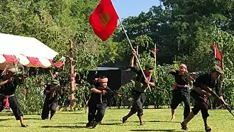 ![]() Students from the Royal University of Fine Arts reenact Khmer Rouge crimes in an event marking the annual Day of Anger (Choeung Ek, 2019) | |