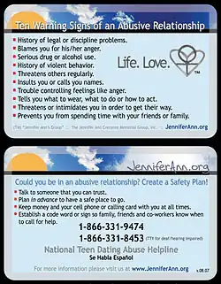 - ^ "Identify Abuse: Recognizing abuse is the first step". The National Domestic Violence Hotline. Retrieved 2018-04-18.
