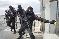 In 2019, Gabonese gendarmes have been trained by Green Beret commandos under sponsorship of the American Embassy.[7] During the 2019 Gabonese coup d'état attempt, Gabonese news reported that the GNG GIGN was involvement in raiding the Radio Télévision Gabonaise building taken by rogue Gabonese forces.[8]