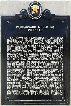 - ^ "An Act Strengthening the National Museum of the Philippines, Repealing for the Purpose R.A. No. 8492, Otherwise Known as the "National Museum Act of 1998", and Appropriating Funds Therefor". The LawPhil Project. Retrieved November 23, 2022.