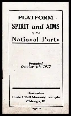 - ^ Platform, Spirit and Aims of the National Party: Founded October 4th, 1917. Chicago: The National Party, 1917; pp. 11–12.