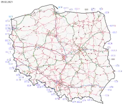 German border – Lubieszyn – Szczecin – Stargard – Wałcz – Piła – ("Bydgoszcz Zachód" interchange – "Bydgoszcz Błonie" junction) – Wypaleniska – Przyłubie – Toruń – Lipno – Sierpc – Drobin – Płońsk