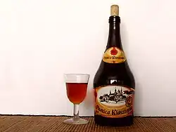 Polish mead (Polish: miód pitny) is an alcoholic beverage within Polish culinary tradition made by alcoholic fermentation of a mixture of honey and water. It has a characteristic honey aroma and a flavour that may be enriched by the addition of fruit juices, herbs or spices. The colour ranges from golden to dark amber, depending on the type of honey used for production.[23] | |