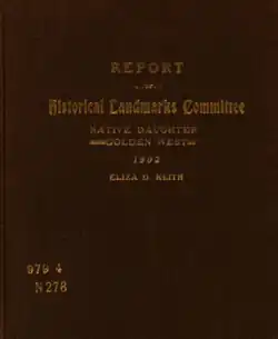 Report of Historical Landmarks Committee of the Native Daughters of the Golden West, by Eliza D. Keith