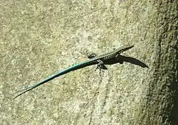 There are for certain 23 reptile species found on Rhodes. These are: Amphisbaenidae, Blanus strauchi; Cheloniidae, Caretta caretta; Dermochelyidae, Dermochelys coriacea; Geoemydidae Mauremys rivulata; Colubridae, Platyceps najadum, Dolichophis jugularis, Hemorrhois nummifer, Zamenis situla, Natrix natrix, Natrix tessellata, Telescopus fallax; Lacertidae, Anatololacerta pelasgiana, Ophisops elegans, Lacerta diplochondrodes; Scincidae, Ablepharus kitaibelii, Chalcides ocellatus, Heremites auratus; Typhlopidae, Xerotyphlops vermicularis; Agamidae, Laudakia stellio; Phyllodactylidae, Tarentola mauritanica; Gekkonidae, Hemidactylus turcicus, Mediodactylus oertzeni and also the invasive Trachemys scripta.