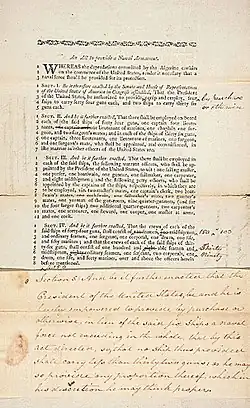 - ^ "An act to provide a naval armament. [Philadelphia: Printed by Childs and Swaine, 1794.]". Library of Congress, Washington, D.C. 20540 USA. Retrieved 2023-11-17.