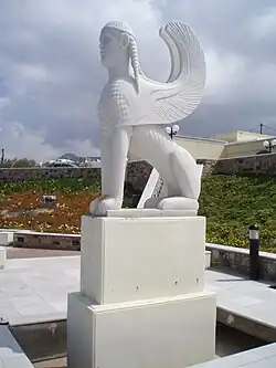 Numerous practical and artistic deployments of Naxian marble can be found on the island. These include a modern Sphinx statue in front of the city council building of the city of Naxos, the remains of the Temple of Demeter at Sangri, the Temple of Apollo (the emblem of Naxos) and many masonry constructions in the villages.