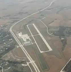 Upon crossing Dutch Hall Road, N-133 leaves Douglas County and enters Washington County. After continuing north for roughly 1.2 miles (1.9 km), N-133 curves to head northwest along the northern edge of the Blair Municipal Airport. Beyond the airport, N-133 continues heading north–northwest for roughly another 4.2 miles (6.8 km) before curving to head northerly again. After approximately 2.3 miles (3.7 km), N-133 enters the city of Blair. Shortly thereafter (0.3 miles [0.48 km]) N-133 reaches its northern terminus at a roundabout with US 30. (From the roundabout US 30 heads north, then east through Blair toward Missouri Valley in Iowa. US 30 heads southwest through Kennard and then west toward Fremont.)[1][3]