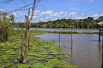 The Negro–Branco moist forests are in the tropical and subtropical moist broadleaf forests biome of the neotropical realm.[1] Vegetation includes flooded and terra firme lowland moist forest, tall or medium-tall campinarana lowland forest, patches of shrubs and herbaceous savanna-like meadows. Forests are typical of the Guiana region, with a different mix of plants from the classical Amazon rainforest. Humiriaceae, Rapateaceae, Tepuianthaceae, Theaceae and Xyridaceae are common families that do not belong to the Amazon flora. The forests hold relatively few epiphytes or lianas compared to other parts of the western Amazon region.[4]