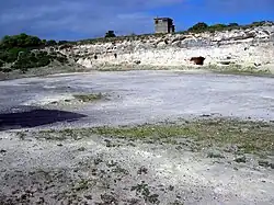 In 1964, Mandela and his co-accused were transferred from Pretoria to the prison on Robben Island, remaining there for the next 18 years.[146] Isolated from non-political prisoners in Section B, Mandela was imprisoned in a damp concrete cell measuring 8 feet (2.4 m) by 7 feet (2.1 m), with a straw mat on which to sleep.[147] Verbally and physically harassed by several white prison wardens, the Rivonia Trial prisoners spent their days breaking rocks into gravel, until being reassigned in January 1965 to work in a lime quarry. Mandela was initially forbidden to wear sunglasses, and the glare from the lime permanently damaged his eyesight.[148] At night, he worked on his LLB degree, which he was obtaining from the University of London through a correspondence course with Wolsey Hall, Oxford, but newspapers were forbidden, and he was locked in solitary confinement on several occasions for the possession of smuggled news clippings.[149] He was initially classified as the lowest grade of prisoner, Class D, meaning that he was permitted one visit and one letter every six months, although all mail was heavily censored.[150]