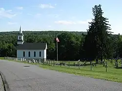 Nelson Welsh Congregational Church is a historic Congregational church located at Nelson, Madison County, New York. It was built in 1876, and is a one-story, three bay by four bay, timber-frame structure with a gable roof and stone foundation. It measures 34 feet by 55 feet. It features a three-stage bell tower with octagonal spire. Also on the property are a contributing privy and cemetery. The cemetery contains the graves of Nelson's earliest settlers with the oldest stone dated to 1809.[2]