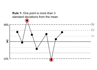 Applying these rules indicates when a potential "out of control" situation has arisen. However, there will always be some false alerts and the more rules applied the more will occur. For some processes, it may be beneficial to omit one or more rules. Equally there may be some missing alerts where some specific "out of control" situation is not detected. Empirically, the detection accuracy is good.