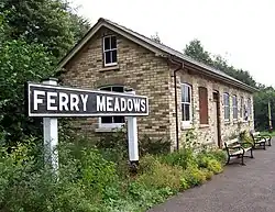 Overton (for Ferry Meadows) is located near the site of Orton Waterville station and provides access to the nearby country park. The current building was moved brick by brick from the old goods yard at Fletton Junction on the East Coast Main Line; it replaced a portable building desperately in need of repair. NVR has now added a canopy. The station building was offered to the NVR for £1 plus transportation costs. The Park is open throughout the year, but most facilities such as the miniature railway and pedaloes only run from Easter to the end of October. The station is also the site of the new Night Mail Museum, with construction well under way with some exhibits open to view.[5] Overton station was renamed Overton 'for Ferry Meadows' in 2017 in conjunction with the Nene Valley Railway's 40th anniversary celebrations.[6]