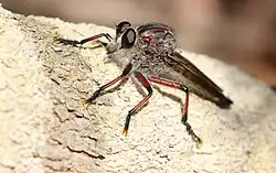 Neoaratus hercules, the hercules robberfly is a species of insect endemic to Australia. A large predatory robberfly found in south east of the continent and in Tasmania. Growing to 4 cm in length, it feeds on other insects in flight. The habitat is forest and woodland.[1][2][3]