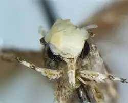 The genus Neopalpa, including the species Neopalpa neonata, was first described in 1998 by Dalibor Povolný.[2] Almost two decades later, Nazari reviewed the material, including specimens that had been collected since the first description of the genus, from the Bohart Entomology Museum.[3] He considered that some of the specimens formed a new species. In January 2017 he published an article naming it Neopalpa donaldtrumpi for the yellowish-white color of the scales on the head, which reminded him of then President-elect Donald Trump's hairstyle.[4][5]