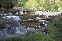 Neora Valley National Park covers an area of 88 km2 (34 sq mi) with an elevation of 183–3,200 m (600–10,499 ft).[3] The highest point is Rachela Danda. Much of the park is still inaccessible. It borders Pakyong District and Samtse Bhutan. The Neora River is the major water source for Kalimpong town.