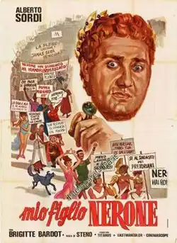 Mio figlio Nerone (literally: My Son Nero), released in the US as Nero's Mistress is a 1956 Italian historical comedy film directed by Steno and starring Alberto Sordi, Vittorio De Sica, Gloria Swanson and Brigitte Bardot, with cinematography by Mario Bava.[2] It depicts a visit by the Roman Emperor Nero and his entourage to a coastal villa.