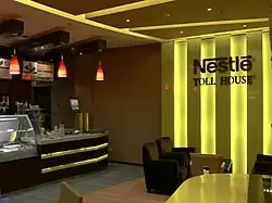 Nestlé Toll House Café was a franchise in the United States and Canada founded by Ziad Dalal[2] and his partner Doyle Liesenfelt. The two started Crest Foods, Inc. D/B/A "Nestlé Toll House Café by Chip" in 2000 in Dallas, Texas. Crest Foods, the master franchisor for Nestlé, is in charge of developing cookie store franchises across the United States as part of Nestlé USA's challenge to the longtime industry leader, Mrs. Fields Famous Cookies Inc. The menu consists of items such as cookies, cookie cakes, brownies, ice cream, milk shakes, smoothies, and a full line of hot and frozen coffee beverages. The Nestlé Toll House Cafés are commonly found in shopping malls or shopping centers.