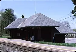 The Netcong-Stanhope Cutoff was a three-mile-long line built by the Lackawanna Railroad in New Jersey in 1900.[1][2] Built as part of the Sussex Branch, this was one of the first projects undertaken by the Lackawanna after William Truesdale became president in 1899. Up until the building of the cutoff, the connection between the Sussex Branch and the Morris & Essex Railroad was at Waterloo, New Jersey. Built with the intent of delivering anthracite coal from the west at Scranton, Pennsylvania, to towns along the Sussex Branch, the connection at Waterloo was not aligned to permit trains from the Sussex Branch to travel eastward towards New York. Although the Lackawanna could have left the line to Waterloo in place and simply built an eastbound connecting switch at Waterloo, there were compelling reasons to moving the connection eastward to Netcong.