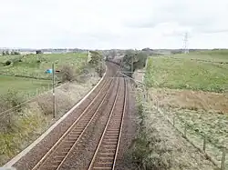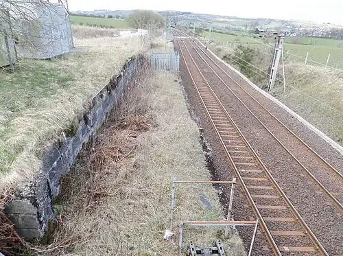 The OS maps of 1911 show a fairly basic infrastructure with the double track main line and a single siding running off to branch twice, one siding running to a loading dock, and a single siding running to a shorter second loading and unloading area. The access point was from Springhill Road, just across from the road overbridge. A signal box was not present and only a possible ground frame and a lone signal post at the siding are shown. A weighing machine is shown and the demolition rubble of this brick structure was still visible in 2016.[1] In 1958 the tracks were still in situ.[2]