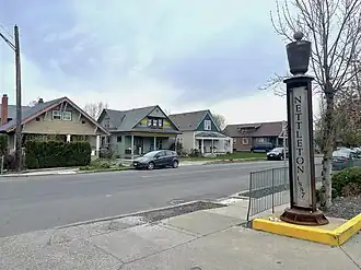 Developed as a streetcar suburb by William Nettleton along with his son and nephew, Nettleton's Addition reflected many traits of suburban development of the day. With an influx of workers moving into the rapidly growing city, simple homes were built on pattern book designs to house the growing population. Streetcars connected the neighborhood to the downtown core and the rest of the city, as well as to a destination recreational park on the other side of the addition to help draw visitors and potential residents into the area.[11] The park, located just west of Nettleton's Addition along the Spokane River, was developed in 1892 and 1893 and would eventually become known as Natatorium Park for its indoor swimming pool facility.[12]