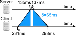 To derive the expression for the offset, note that for the request packet, and for the response packet, Solving for θ yields the definition of the time offset.