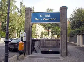 Neu-Westend is a Berlin U-Bahn station on line U2. It opened in 1922 and was built by A. Grenander. In 1986 the station was renovated, but the original eastern entrance was kept.[2]