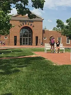 The New Albany Community Foundation’s first major accomplishment was raising $1.2 million in 2002 to support the establishment of a local New Albany branch of the Columbus Metropolitan Library.[3][19] The fundraising effort was catalyzed when historian David McCullough headlined the foundation’s first annual Remarkable Evening benefit, hosted by local residents and philanthropists Abigail and Leslie Wexner, in the fall of 2002.[8][20] The new public library opened in New Albany's Market Square in 2003. In the following year, the number of annual visits increased from 36,707 in the old location within the local high school to 158,429 visits in the new building.[21] The branch was later named in honor of Charlotte P. Kessler, a library benefactor and advocate.[22][23] In 2020, a new library garden for readings and events was opened as an extension of the city’s public Rose Run Park.[24]